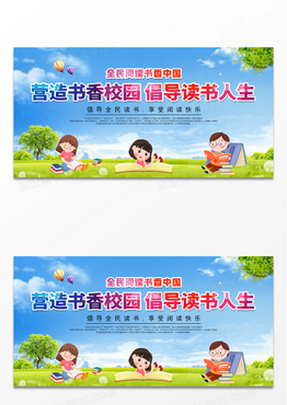 蓝色简约全民阅读营造书香校园倡导全民读书世界读书日展板