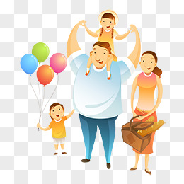手绘卡通下雨天爸爸给妈妈孩子们撑伞免抠元素