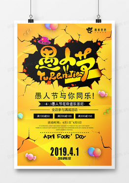 黄色撕裂效果愚人节节日海报设计