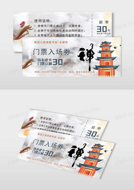 寺庙简约插画景区门票入场券旅游景区门票旅游门票