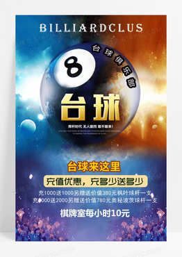 大气台球俱乐部台球培训台球比赛台球厅宣传海报