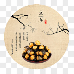 手绘落霜的柿子和植物秋季国潮微景观素材