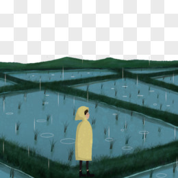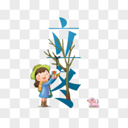 手绘卡通雨水过后女孩望着叶子里的水珠