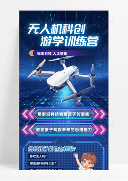 蓝色科技无人机科创游学夏令营手机宣传海报长图教育培训