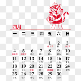 虎年创意剪纸风新年日历四月元素