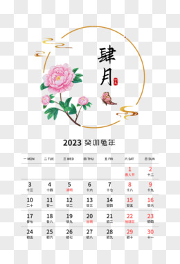 矢量中式国风癸卯年四月日历素材
