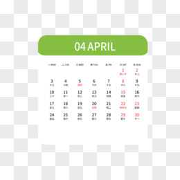 一组简约矢量红色简约风2023年日历四月素材