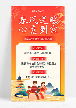 红色中国水墨风春风送暖心意到家书法公益活动手机海报