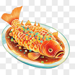 卡通手绘苏菜松鼠鳜鱼免抠元素