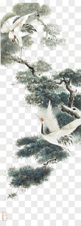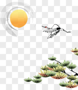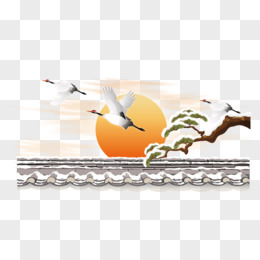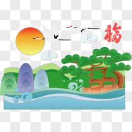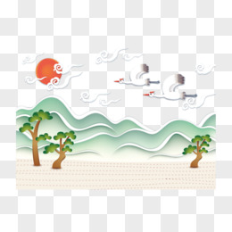 剪纸国风仙鹤松树粽子龙舟合成插画元素