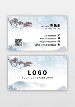 古风水墨松针片模板