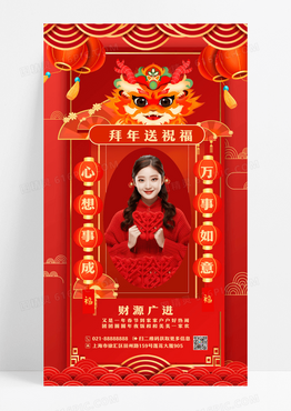 红色拜年送祝福拜年海报除夕拜年手机宣传海报