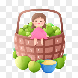 手绘女孩坐在果篮上微景观素材