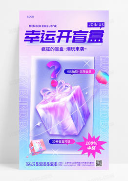 紫色酸性流体渐变风卡通开盲盒幸运抽奖营销活动手机宣传海报