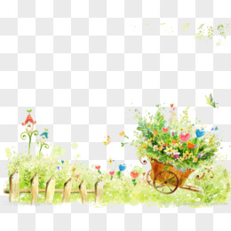 手绘儿童春天放风筝草坪嬉戏场景素材