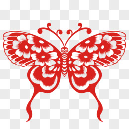 红色剪纸动物蝴蝶素材