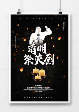 黑色简约清明致敬英雄疫情海报