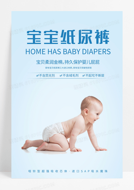 蓝色小清新婴儿用品婴儿纸尿裤宣传海报