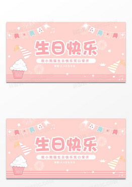 粉色气球碎片生日快乐宴会邀请函展板海报设计