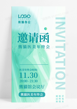 绿色渐变医美公司年终总结大会邀请函手机海报2024年会