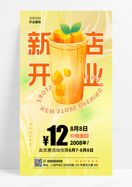橘色塑料风芒果奶茶新店开业手机宣传海报
