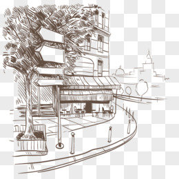 手绘线稿建筑免抠元素