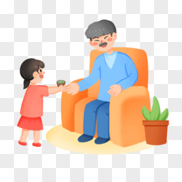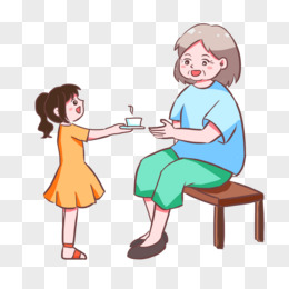 手绘插画风孙女女儿陪伴长辈一起庆祝免抠元素