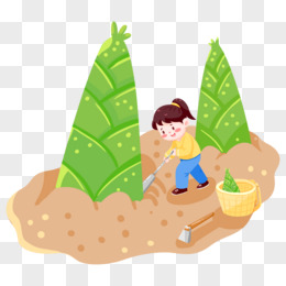 手绘小女孩挖笋元素