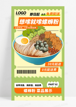 绿色手绘螺蛳粉自由想嗦就嗦宣传长图