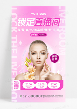 紫色渐变锁定直播间美容化妆品美妆直播手机宣传海报