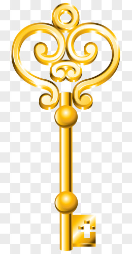 金色花纹单齿钥匙免抠素材