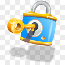 3D卡通带锁孔的蓝色盾牌和金币钱袋免抠元素