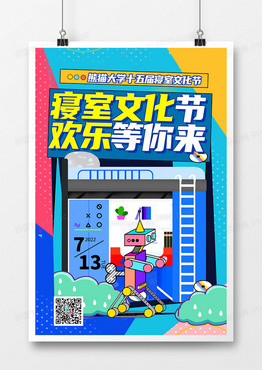 创意孟菲斯风格宿舍文化节海报