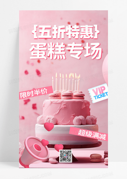 粉色时尚创意五折特惠蛋糕专场食品类速食通用电商海报