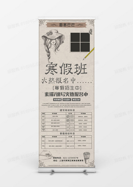 寒假班素描风格创意展架设计