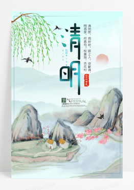 清明节中国风素雅清明时节海报