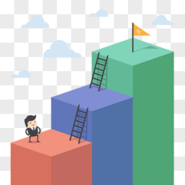 手绘三人爬楼梯奋斗插画元素