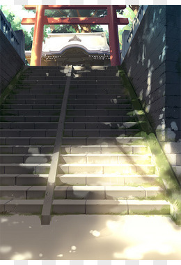 治愈系神社台阶动漫插画