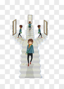 手绘创意楼梯插画素材
