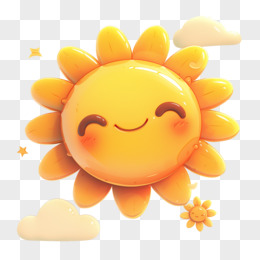 一组矢量膨胀风3D立体可爱表情天气贴纸合集元素