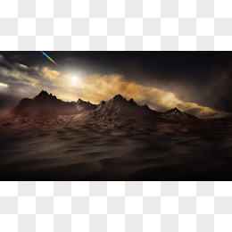 火山天空太阳光效矢量素材