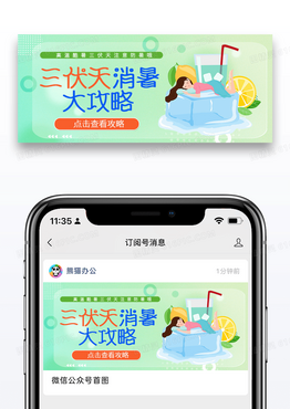 绿色渐变时尚三伏天消暑攻略公众号封面配图图片