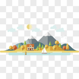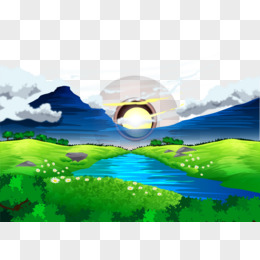 卡通手绘夕阳落日免抠素材