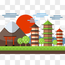 扁平化日本的景观背景