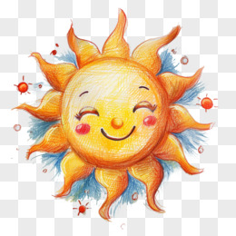 卡通手绘可爱开心微笑的太阳拟人表情免抠元素