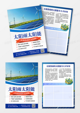 蓝色太阳能太阳雨介绍宣传单太阳能宣传单