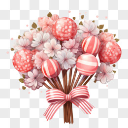 粉色棒棒糖糖果球花束礼物元素