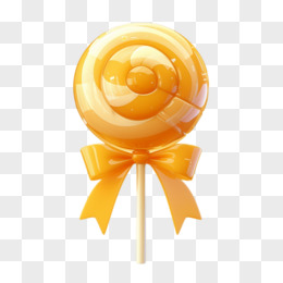 3D卡通黄色蝴蝶结棒棒糖免抠元素
