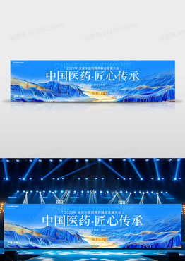 蓝色烫金山水风中医大会活动宽屏展板中医宽屏展板