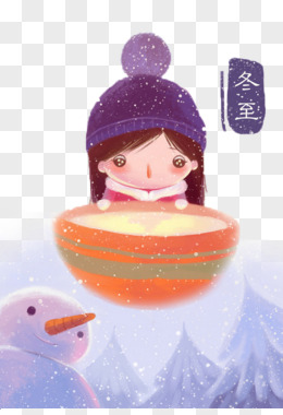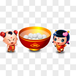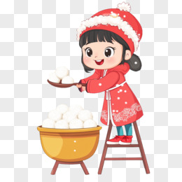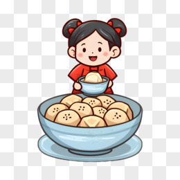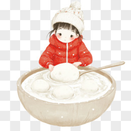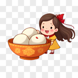 3D卡通小女孩站着大碗上面捞汤圆免抠元素